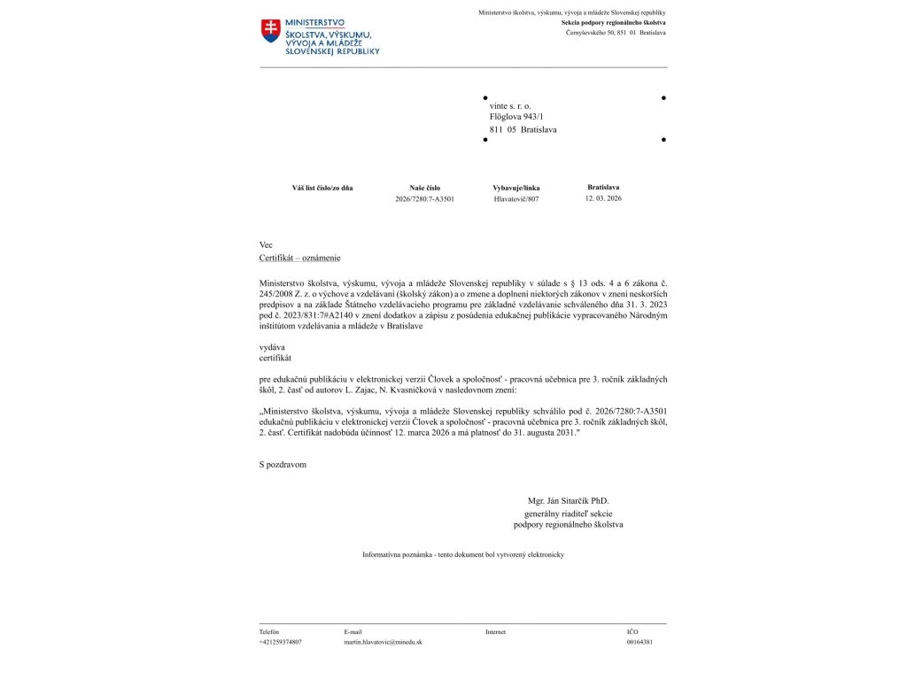 Učebnica je v súlade so Štátnym vzdelávacím programom z r. 2023 (tzv. nové kurikulum).